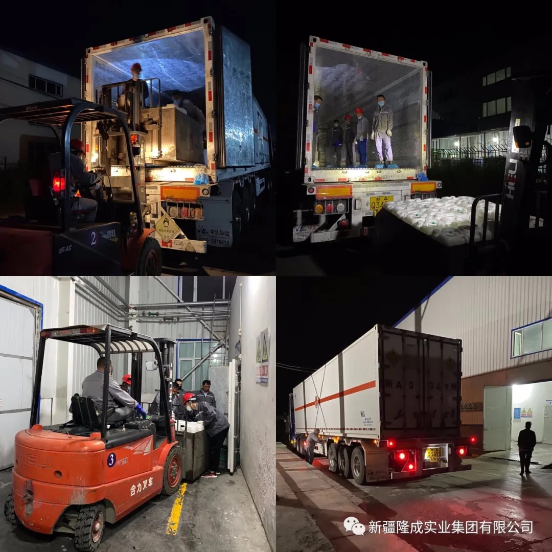 這場戰(zhàn)“疫”必勝,是華泰隆每個人心中堅定的信念。烏魯木齊市隆成實業(yè)(集團)有限公司常務副總經理劉惠帶領領導班子們率先垂范,以身作則的精神激勵著華泰隆的每一個人。凌晨5:00 華泰隆合成班和全體領導干部就開始裝運發(fā)往阜康的26噸引發(fā)劑。21個人喊著號子齊心協(xié)力的搬運,不一會大半車引發(fā)劑已裝車完畢。
